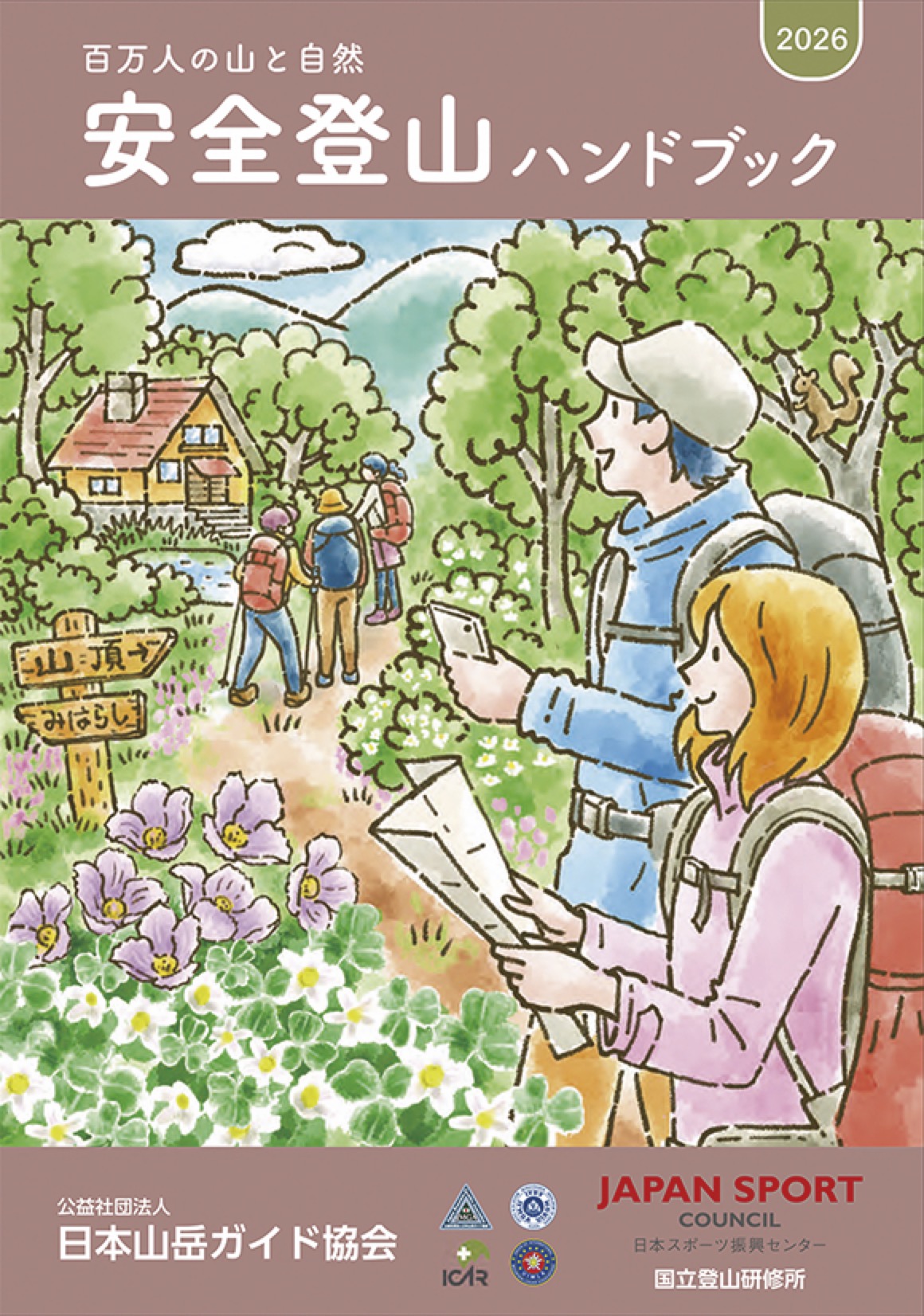 公益社団法人日本山岳ガイド協会では、独立行政法人日本スポーツ振興センター国立登山研修所と協働して、山岳遭難防止・削減に向けて、安全登山の普及啓発として「安全登山ハンドブック」を毎年発行しております。この冊子は、全国の主要な登山口、登山用具店、ビジターセンターなどに配し、無料で、登山される皆様の手に渡るようにしております。是非ともお読みいただき、安全登山を実践して頂くようお願い致します。