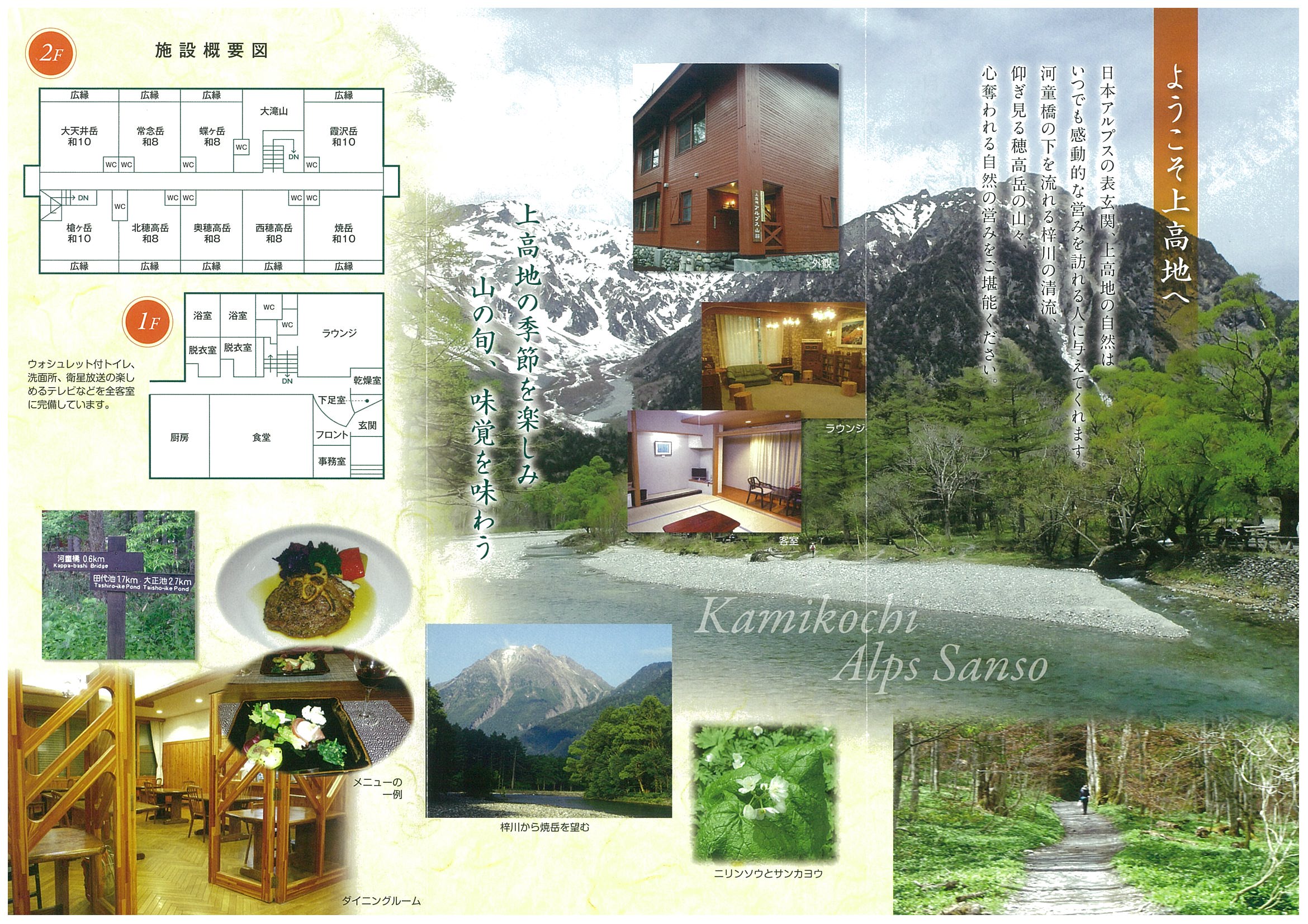 | 〒390−1516 長野県松本市安曇上高地4468 | TEL: 0263−95−3501 FAX: 0263−95−3502 メール:alpssanso@jfmga.com |